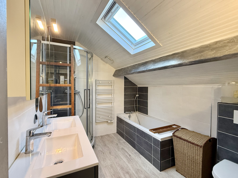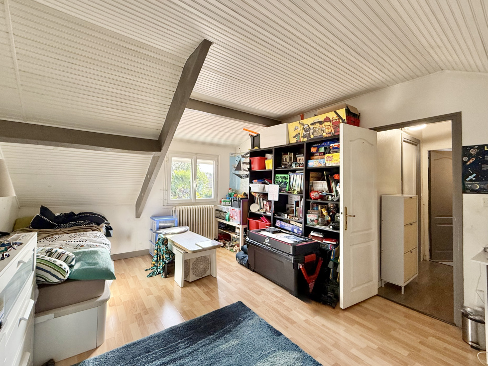 BOUGUENAIS LES COUETS. Cette maison atypique de 1900, située en fond d’impasse à Bouguenais, mise sur l'espace et la fonctionnalité. Son atout principal : sa vaste pièce de vie de 52 m² particulièrement lumineuse grâce à une extension en véranda réalisée en 2023. Cet ensemble semi-ouvert regroupe le salon-séjour, la salle à manger et une cuisine aménagée-équipée dinatoire. L’organisation intérieure en demi-paliers offre une distribution originale. Le rez-de-chaussée comprend une première chambre, une salle d’eau et des WC séparés. Les niveaux supérieurs accueillent une grande chambre mansardée, ainsi que deux autres chambres et une salle de bain avec WC sur le dernier palier. À l'extérieur : jardin arboré et ensoleillé avec terrasse, barbecue en brique et chalet de jardin. Très pratique, un portillon permet un accès direct au jardin pour ranger les vélos. Un garage avec espace lingerie et rangements complète ce bien chauffé au gaz. La maison est située en zone D du Plan d’Exposition au Bruit (PEB), ce qui atteste d'une proximité avec l'aéroport tout en restant en dehors des zones de gêne les plus fortes. L'emplacement reste stratégique pour le quotidien : Fougan de mer et le collège La Neustrie sont accessibles à pied, tout comme les transports avec le Bus 36 et le Tram 3 (station Neustrie). Les informations sur les risques auxquels ce bien est exposé sont disponibles sur le site Géorisques : www.georisques.gouv.fr