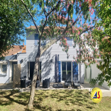 LES SORINIERES. Découvrez cette maison très bien entretenue de 120 m² habitables, idéalement placée à moins de 10 minutes à pied des commodités et des écoles. La maison se compose au rez-de-chaussée d'une entrée, d'un séjour double en L avec cheminée et d'une cuisine équipée, tous deux donnant accès à une véranda spacieuse. Ce niveau dispose également d'une lingerie et d'une salle d'eau. À l'étage, le palier dessert trois chambres et une salle de bains. Le terrain de 970 m², entièrement clos et joliment arboré, offre un environnement calme et privilégié. La propriété est parfaitement équipée pour le rangement et les véhicules grâce à ses dépendances, son garage avec mezzanine de stockage et son carport. Une opportunité rare alliant volumes généreux, extérieur mature et emplacement de premier choix.