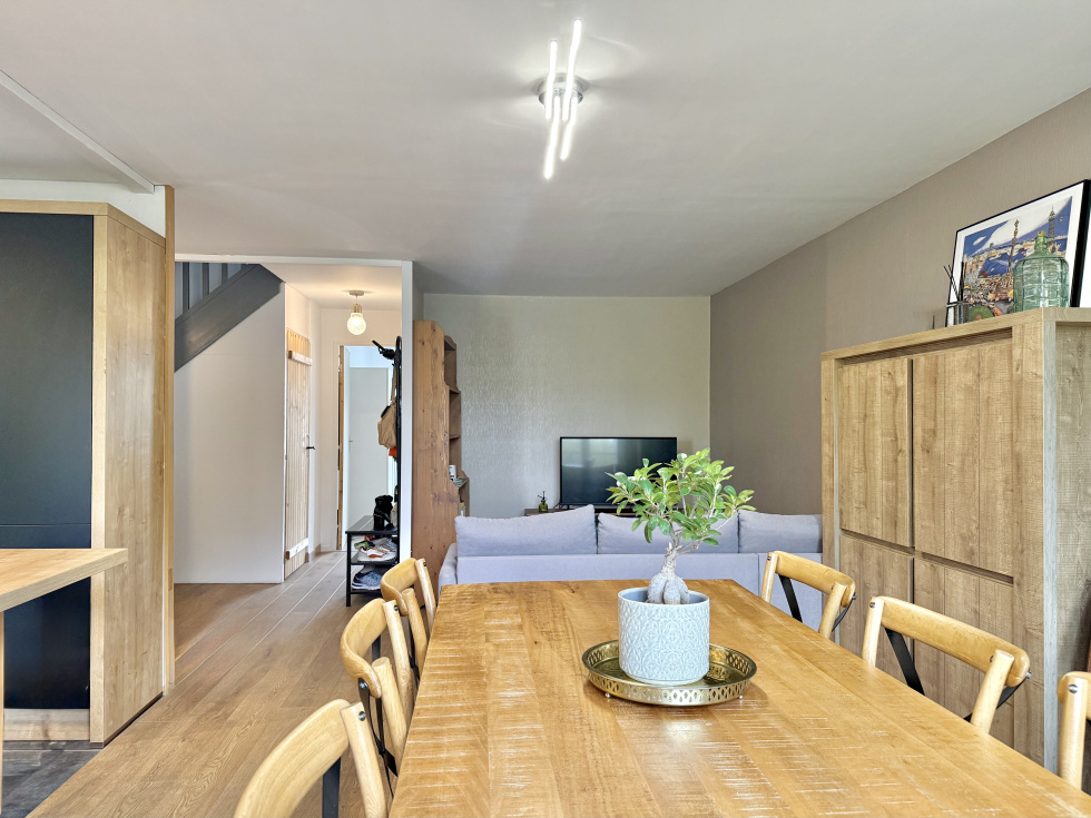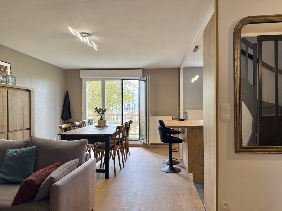 Duplex de 100 m² (120 m² au sol) fonctionnel, clair et très soigné. Dernier étage exposé Sud avec balcon. Entrée, pièce de vie ouverte sur cuisine aménagée (accès balcon), arrière-cuisine, dégagement, rangement sous escalier, wc, chambre avec salle d'eau. Etage : palier, lingerie, wc, 2 chambres (15 et 16 m²), salle d'eau (12 m²). Les informations sur les risques auxquels ce bien est exposé sont disponibles sur le site Géorisques : www.georisques.gouv.fr